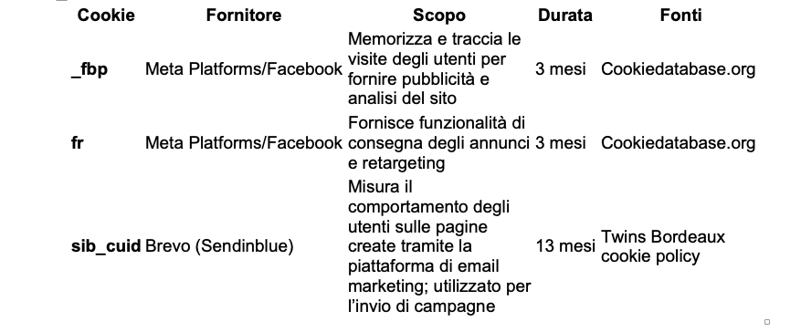 Questi cookie vengono attivati solo con il consenso dell’utente. La presenza della Meta Pixel e dell’SDK di Brevo nel codice della pagina consente di raccogliere dati sui visitatori per finalità di remarketing e automazione marketing .